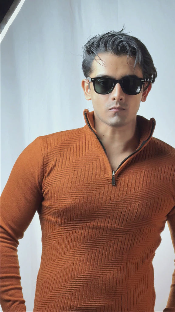 Fall is here! That means sweaters and scarves and coats and gloves and every layer you can possibly imagine. Some days a down-filled puffer coat is necessary, and other times all you need is this Brown Knitted Quater-zip Sweater 50% Acrylic, 40% Polyester, 5% Wool, 5% Other fibers